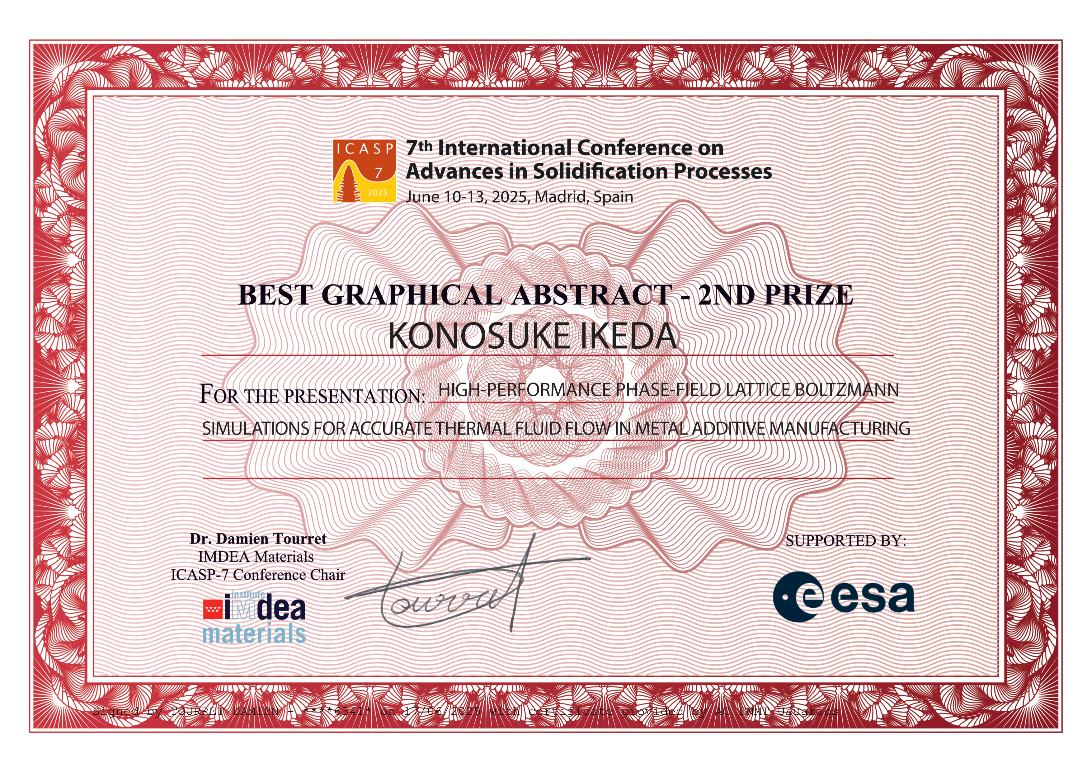 ・The 7th International Conference on Advances in Solidification Processes The Best Graphical Abstracts Awards (honorable certificate)